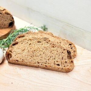 Furthermore, we generously coat our bread with extra wheat bran to provide the added fiber your digestive health deserves. As a result, each bite delivers a perfect balance of bold flavor, rustic texture, and herbaceous complexity. This makes our sourdough an ideal choice for dipping in balsamic vinegar, pairing with cheeses, or simply enjoying on its own.